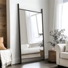 The MAYEERTY 73x35x1in full-length mirror features a solid wood ladder-style black frame, no stand design, and a rectangular shape¡ªideal for leaning against walls in bedrooms, dressing areas, or entryways. It offers a full-body viewing experience, with the solid wood frame ensuring sturdiness and the black finish matching modern/minimalist decor.
