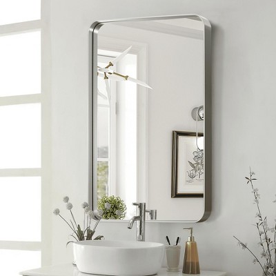 The MAYEERTY 70x30x1in hanging mirror has a PS (polymer) frame, right-angle rectangle shape, and silver finish. PS material is lightweight yet durable, the 70in length fits large walls, and the silver finish brightens spaces. Wall-mounted, it is a cost-effective, stylish option for bedrooms or living rooms.