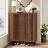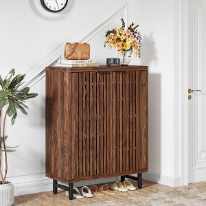 Breathable Wooden Shoe Cabinet - Featuring well-ventilated louver doors in a stunning dark walnut finish, this lightweight cabinet keeps your shoes fresh and wards off mildew, while blending seamlessly with your decor.