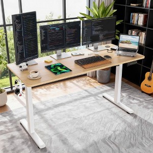 MAYEERTY 55x24" Oak Electric Standing Desk - Electric Height Adjustment, Splice Board