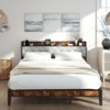 MAYEERTY Iron Frame Bed with Soft-Padded Headboard Storage and Charging Port
