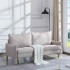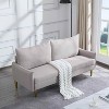 Add a stylish focal point to your space with this 66.9-inch modern couch/loveseat, featuring neat lines and unique curved arms paired with an eye-catching back cushion. It¡¯s a perfect fit for living rooms, home studios, and bedrooms, blending contemporary charm with functional comfort. Crafted with a solid and manufactured wood frame, it ensures reliable sturdiness for daily use. The back cushion covers are removable and washable for easy cleaning and maintenance, while the seat cushions are filled with medium-firm foam¡ªoffering balanced support without sacrificing coziness (note: seat cushions are not removable). Supported by sleek golden tapered metal legs, it adds a touch of elegance to any decor. This loveseat comes with hidden packaging: all parts and hardware are stored underneath the sofa, so please check before assembly. Both back and seat cushions are compressed for shipping¡ªallow 72 hours for full rebound after unpacking to enjoy the perfect seating experience.
