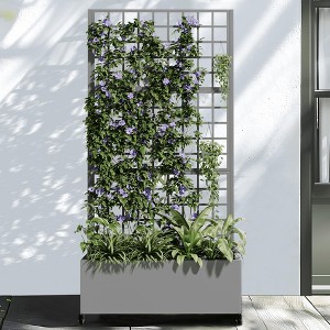 MAYEERTY Planter Box with Trellis Iron Gray Rectangle Diamond Pattern 71x35x16in