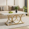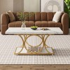 This chic modern coffee table features a white faux marble veneer top and gold metal legs, adding a luxurious touch to your living space while enhancing warmth. The faux marble surface mimics the elegance of real marble (without the heavy weight), and the gold legs bring a pop of sophistication. It¡¯s perfect for holding coffee mugs, magazines, or decor, becoming a stylish focal point in your living room.