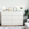 - This 6-drawer white storage cabinet is equipped with 6 large-capacity storage drawers. Whether it is seasonal clothing, children's toys, book collections, or various personal belongings, they can all be easily stored, instantly keeping your home neat and tidy. The wide top surface is an ideal spot for displaying photo frames, vases, and art ornaments. It can also be flexibly transformed into a TV cabinet to meet diverse needs.