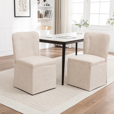 Crafted with soft linen fabric and armless padded seats, this 2-piece set provides cozy seating for family dinners or casual relaxation, blending naturally into dining rooms, kitchens and living rooms with a gentle beige color.