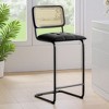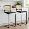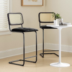 MAYEERTY 30" Black Counter Height Bar Stools Set of 2, PU Leather & Rattan Back, for Dining Areas