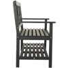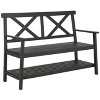 - Bench Features: Storage, Slatted Seat, Armrests, X Back