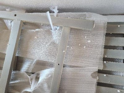 Completely different color. Material is like painted wood- looks nothing like picture. Also Styrofoam shredded all over box and bench.
