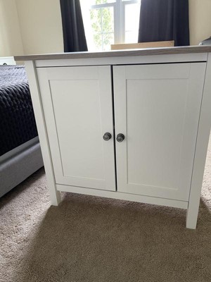 Maintain an organized work or living space with a floor cabinet that suits your casual home. Highlighted by its relaxed modern farmhouse style, the Bush Furniture Mayfield Accent Storage Cabinet with Doors is a perfect fit for virtually any residential setting. Closed storage with one adjustable shelf accommodates office supplies and household items of various sizes. Cabinet doors open and close on smooth Euro-style hinges for easy access to materials you want kept in order but out of sight. Make use of the versatile 31W x 16D x 30H design to organize your home office, living room, entryway, kitchen pantry or bathroom. Dark Bronze hardware complements a stylish Pure White and Shiplap Gray two-tone finish for an easy going appearance you're sure to love. Upgrade your storage and display capacity with the coordinating Mayfield Tall Hutch Organizer (sold separately) to add an open shelf area for books, pictures, decorations and more. This multipurpose 2 door cabinet is tested to meet ANSI/SOHO quality standards for safety and performance and is backed by the Bush Furniture 1 Year Manufacturer's Warranty. See the full collection for coordinating items available.