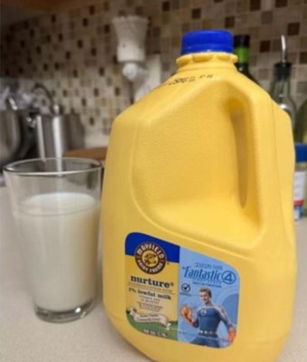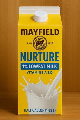 [This review was collected as part of a promotion.] Mayfield Nurture 1% Low-Fat Milk is an exceptional choice that harmoniously combines a velvety texture with a light and refreshing taste. Its low-fat content makes it an ideal option for my morning cereal or smoothies, while simultaneously delivering the rich, wholesome milk flavor that I appreciate. The meticulous attention to detail in its production is evident in every sip, as the quality is consistently remarkable. Notably, it retains its freshness for a longer duration compared to other brands I have tried. Although I may have been influenced by the distinctive color of its jug, I assure you that this should not deter you from trying it. The specialized colored jug not only enhances its visual appeal but also sets it apart from conventional milk options. This milk is an excellent choice for consumption on its own or as an addition to your morning coffee or cereal. Additionally, it is worth mentioning that Mayfield Nurture 1% Low-Fat Milk is more affordable compared to most brands available in the refrigerated section of grocery stores. As a side note, obtaining the milk was a challenging process that involved numerous unsuccessful attempts and a considerable distance traveled.