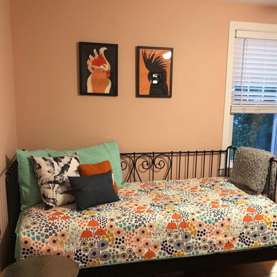 Searched for awhile for 100% cotton quilt sets with a nice print. Finally found this on the target site. The print of this set is really lovely, absolutely pretty. Love all the different colors! Stars off for a few reasons. 1. After I washed it, using all the color laundry detergent and following the tag directions, the color faded and the front side print’s colors was much less vibrant than before I washed it. 2. I have found more than a handful of loose stitching with inches of thread coming loose. 3. Quilt seems to have shrunk a little. All these make me question the quality a little, hoping that it lasts me for a long time because I really love the print.