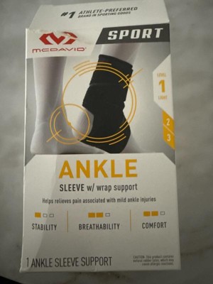 The McDavid Sport Ankle Sleeve with Wrap Support helps relieve pain associated with mild ankle injuries. This ankle sleeve provides light support in a breathable, comfortable sleeve design that's easy to wear all day for almost any activity — whether you're working out or staying on your feet. The low-profile, anatomical quick fit elastic sleeve design conforms to your ankle and the breathable elastic mesh keeps you cool and dry.