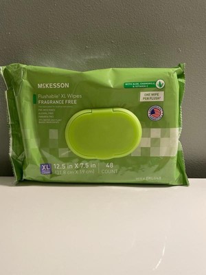 Introducing McKesson Flushable* Wipes, your hygiene companion for home and travel. A flushable* wipe is intended for the use of cleaning the perineal area. The water and plant-based ingredients are designed to make the wipe safe for most septic systems and sewers, allowing users to flush* a single wipe for improved hygiene and convenience. The compact, soft pack design is ideal for a home bathroom or on-the-go and includes a snap-closure lid to retain moisture and freshness. McKesson’s flushable* wipes are available in two sizes, two pack quantities, and with or without fragrance to meet individual needs and preferences. The 7 x 6.9-inch wipes are sized to balance efficacy and portability.