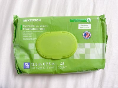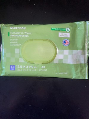 [This review was collected as part of a promotion.] McKesson Flushable XL Wipes are fragrance-free, effective, and gentle on skin. The large size adds value, and the plant-based formula supports sustainability. A bit pricier, but worth it for quality.