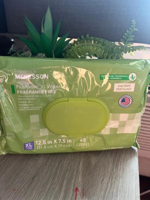 McKesson Flushable* Wet Wipes - Aloe & Vitamin E Formula, Gentle on Skin, Plant-Based Adult Cleansing Wipes - Unscented, 48 Wipes, 1 Pack