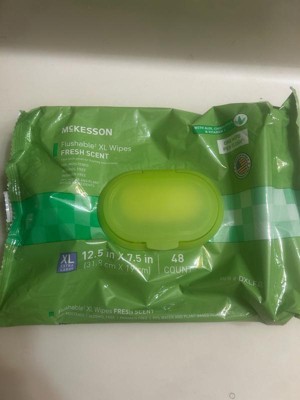 [This review was collected as part of a promotion.] These McKesson Flushable Wet Wipes XL Aloe & Vitamin E Formula Pack of 48 are super big. They work effectively and are biodegradable. You can only flush one at a time. They have no scent to them. They would have gotten 5 stars, but they are kinda thin and tear if you don’t take them out of the package just right.