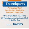 Get help with I.V. injections with a box of McKesson tourniquet bands. Phlebotomists that need to target a certain vein inside the arm, whether for blood collecting or injections, can use a tourniquet band to make this task easier. This tourniquet perforated roll is made of tetraphenylethylene (TPE) for both elasticity and firmness. With no clasp or buckle needed, this bright blue band can be tied around the arm, causing veins inside the arm to become more visible and accessible. The latex-free tourniquet band on a roll resists tearing, while the textured strip helps to keep it tied around an arm. The perforated rolls are non-sterile and non-reusable.