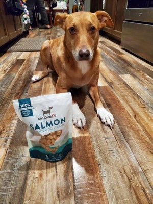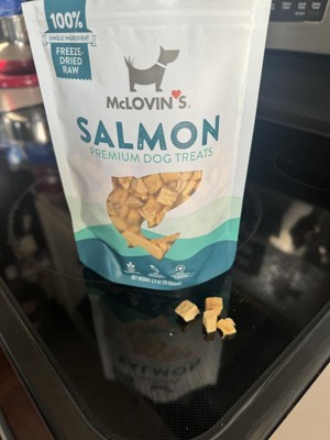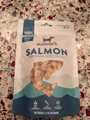 This is likely the very first dog treat that my dog has immediately devoured and wanted more. I gave him one treat and he followed me around the house until he got another treat. I like that they are only one ingredient treats -- just freeze-dried salmon! I also like that the pieces are small so I can use them as training treats as well. No artificial ingredients, no preservatives, no fillers, no synthetic vitamins, no synthetic minerals, no grain or gluten. Clean-living for pets according to the McLovin's packaging. I'll be heading to Target for more.