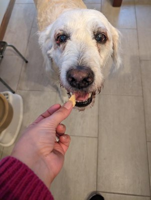 I have been trying to train my dog to give kisses. She isn’t typically very kissy. I am pretty sure my dog would do anything for these treats. She was licking my hand at every command and has randomly come up and licked my hand several more times since I tried with these treats. My only issue is that I really ought to have picked a different flavor. My dog loves the salmon, but I hate the smell. That is definitely my own judgment error, though. I knew it would smell like salmon because it is freeze dried, raw salmon. I just didn’t think about my tolerance to the smell. I will definitely buy these again, just in a different flavor.