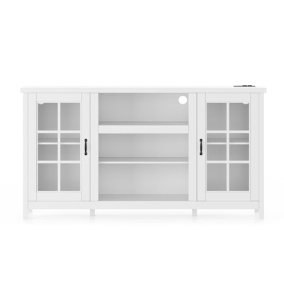 White MDF sideboard with grid acrylic doors, combines modern style and practicality. Transparent doors allow easy identification of contents. Spacious interior stores tableware or sundries, perfect for dining rooms or kitchens.