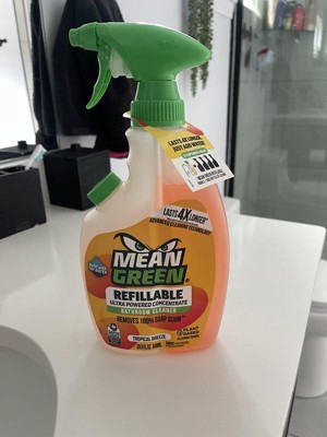 [This review was collected as part of a promotion.] I recently tried the Mean Green Refillable Ultra Powered Concentrate Tropical Breeze jBathroom Cleaner and was genuinely impressed by its performance. The cleaner is very effective in removing tough stains and leaves the bathroom smelling fresh with its delightful tropical breeze scent. The fact that it's a concentrate and refillable makes it an excellent value for money, reducing waste and saving costs. It's versatile enough to be used on multiple surfaces without causing any damage. The packaging is sturdy and the spray bottle is easy to handle, even when my hands were wet.