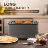 - [Digital Countdown Timer]: After the lever pressed down, the digital countdown timer will dispaly the browning level you chose for 4 seconds, then a countdown timer will tell you how much time needed to complete the toasting, helps you to keep other kitchen works orgnized. The breads will pop up at a position where you can easily get breads out without burning fingers