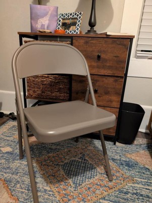 [This review was collected as part of a promotion.] These are really great! You might think there's not a big difference from one folding chair to another- but you'd be wrong! These are sleek, lightweight, and easily fold up and down--all the folding chair basics. At the same time, I love the rounded edges to the seat and the slight texture of the paint, providing the perfect traction you didn't know you needed to prevent things from slipping off. These fold up perfectly behind the sofa for when they aren't in use, but I would also leave them out if needed without feeling like a college dorm room. High quality convenience for additional seating without taking up all the space!