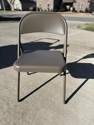 MECO Sudden Comfort All Steel Folding Chair Set with Steel Frame and Contoured Backrest for Indoor or Outdoor Events, Buff (Set of 4)