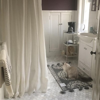 Looks so cute in the guest bathroom! Rug is thick.