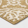 A: The rug features a latex backing, which helps keep it in place on the floor.