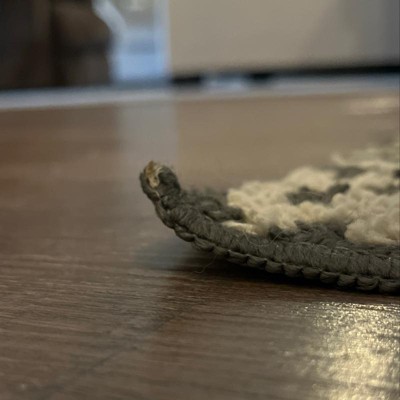 A: The rug is made from 100% Olefin, known for its durability and stain resistance.