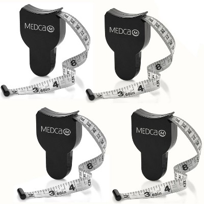 MEDca Body Measuring Tape, 4-Pack Dual-Sided Retractable Tapes for Body Fat & Fitness Tracking, Black