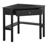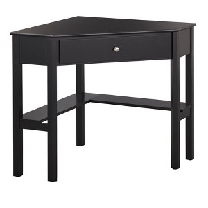 Maximize your office area with the charming Medford Corner Desk from Buylateral. Compact function provides all your workspace necessities with a single drawer for office supplies and open shelving space for storing books, papers and more. Crafted of pine wood and MDF, your useful workspace will be fashionably highlighted with its rich Black finish.