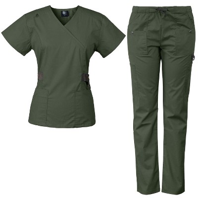 Medgear Fleur Women's Stretch Scrub Set with Zip Chest Pocket Top and Knit Rib Cuffs Jogger Pants