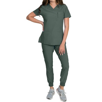Medgear Women's Scrubs Set Medical Uniform - 4 Pocket Top and Multi Pocket Pants Hunter S