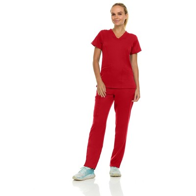 Medgear Women's Scrubs Set Medical Uniform - 4 Pocket Top and Multi Pocket Pants Red M