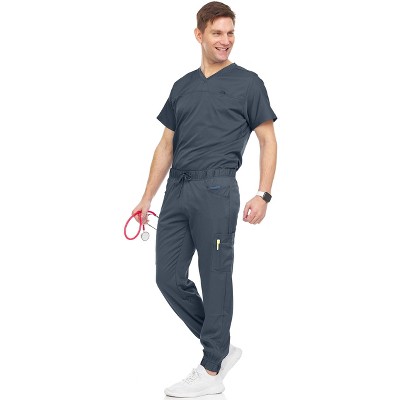 Medichic Men Scrubs Set - Stretch V-Neck Scrub Top with 7-Pocket Pants Workwear