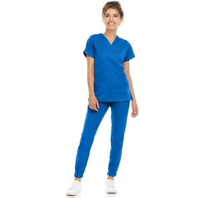 MediChic Scrubs for Women's V-Neck Scrub Set with Six Pocket Cargo Jogger Pants with 4-Way Stretch, Royal XX Small