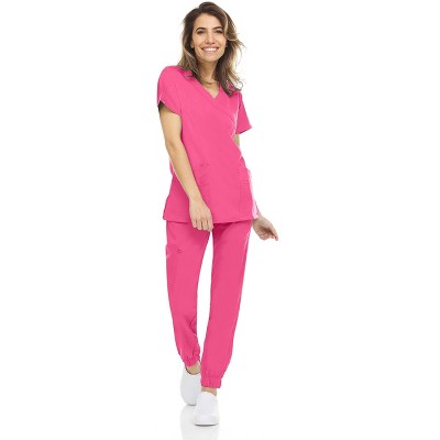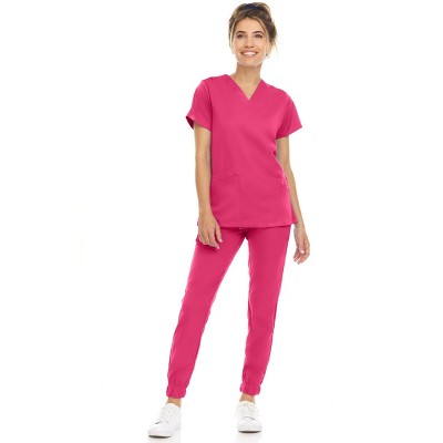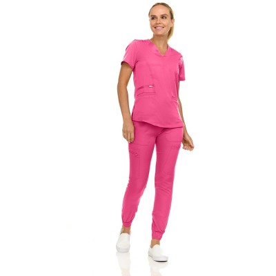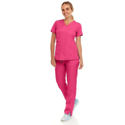 Medichic Women's Medical Scrubs Set- V-Neck with Flare Pant, Shocking Pink Small