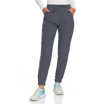 • MediChic womens jogger scrub pants are made with soft stretch polyester and spandex. Featuring an elastic drawstring waistband that can be worn inside or outside and chic ankle cuffs, these womenÕs scrub pants joggers let you stretch, bend and twist in comfort.