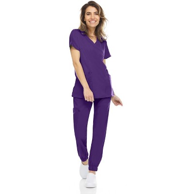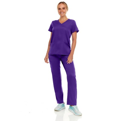 Medichic Women Scrubs Set V-Neck with Straight Leg Pants Medical Scrub Set, Grape Small