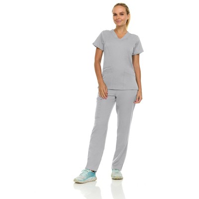 • Manufactured in 4-way stretch fabric, these scrub tops contain three methodical pockets and side slits for ultimate freedom, and the joggers contain three pockets and a cargo.