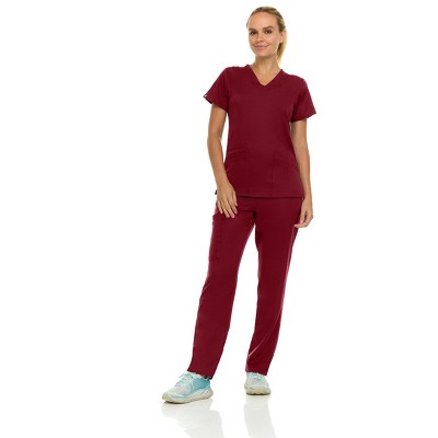 MediChic Womens 8-Pocket Scrubs Set- Mock Neck with 4-Pocket Jogger Scrub Pants