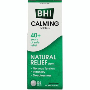 MediNatura BHI Calming Tablets are a homeopathic treatment that temporarily provides feelings of relief and tranquility. It works on nervous tension, irritability and sleeplessness. MediNatura Calming is safe for adults and children 12 years of age and older.