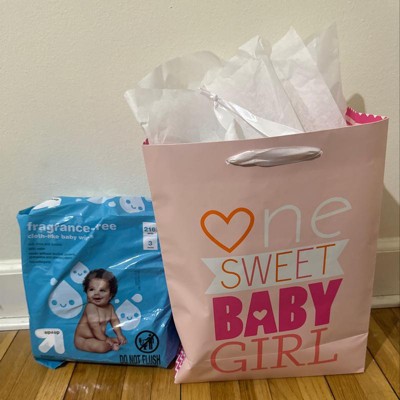 Medium 'One Sweet Baby Girl' Baby Shower Gift Bag with Tag Pink - Spritz™: Typography, Paper, 12.75" Height, 10" Width