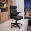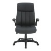 Upgrade your workspace with this Executive Office Chair, designed for all-day comfort and professional style. Featuring premium faux leather upholstery, this chair offers durability and easy maintenance while enhancing any office décor. Height Adjustable with a locking tilt control, you can customize your seating experience for maximum support while the padded flip-up armrests provide versatile positioning. The 5-star nylon base with smooth-rolling casters ensures effortless mobility across different surfaces. Whether you’re working from home or in a corporate office, this modern executive chair delivers superior comfort and style. 28.75"W x 28"D x 44.5"-48.5"H.