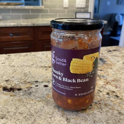 Swap out your go-to salsa verde or salsa roja for Medium Corn and Black Bean Salsa from Good & Gather™ and mix up your taco night tradition. This tomato-based salsa is made with black beans, sweet corn, red bell peppers, onions and savory spices for delicious flavor that's rounded out with the zest of lime juice and a medium-heat finish from jalapenos and green chile peppers. Great as a topping for dishes traditionally served with salsa — like tacos, nachos or burritos — this corn and bean salsa is also sure to delight when added to omelets, chili or grilled fish. This salsa is made without artificial colors, flavors or preservatives.