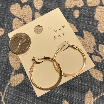 These Medium Flat Hoop Earrings from A New Day™ are the perfect accessory for everyday wear. In a flat hoop style with a medium-size design and shiny finish, this pair of earrings is made from nickel-free metal and sports a leverback closure for easy on and off. Pair these simple yet stylish hoops with anything from your most casual jeans to glamorous dresses.