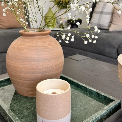 This is ideal for a dining table or coffee table where you don’t want a large size vase that can come in between face-to-face conversations. It’s also perfect to pair it in groups due to its neutral and natural color. It might not be enough to be a standalone decor item and you may want to pair it with something to bring out its natural appearance. We paired it with fresh flowers and a candle (glad Target came out with a similar material candle as well).